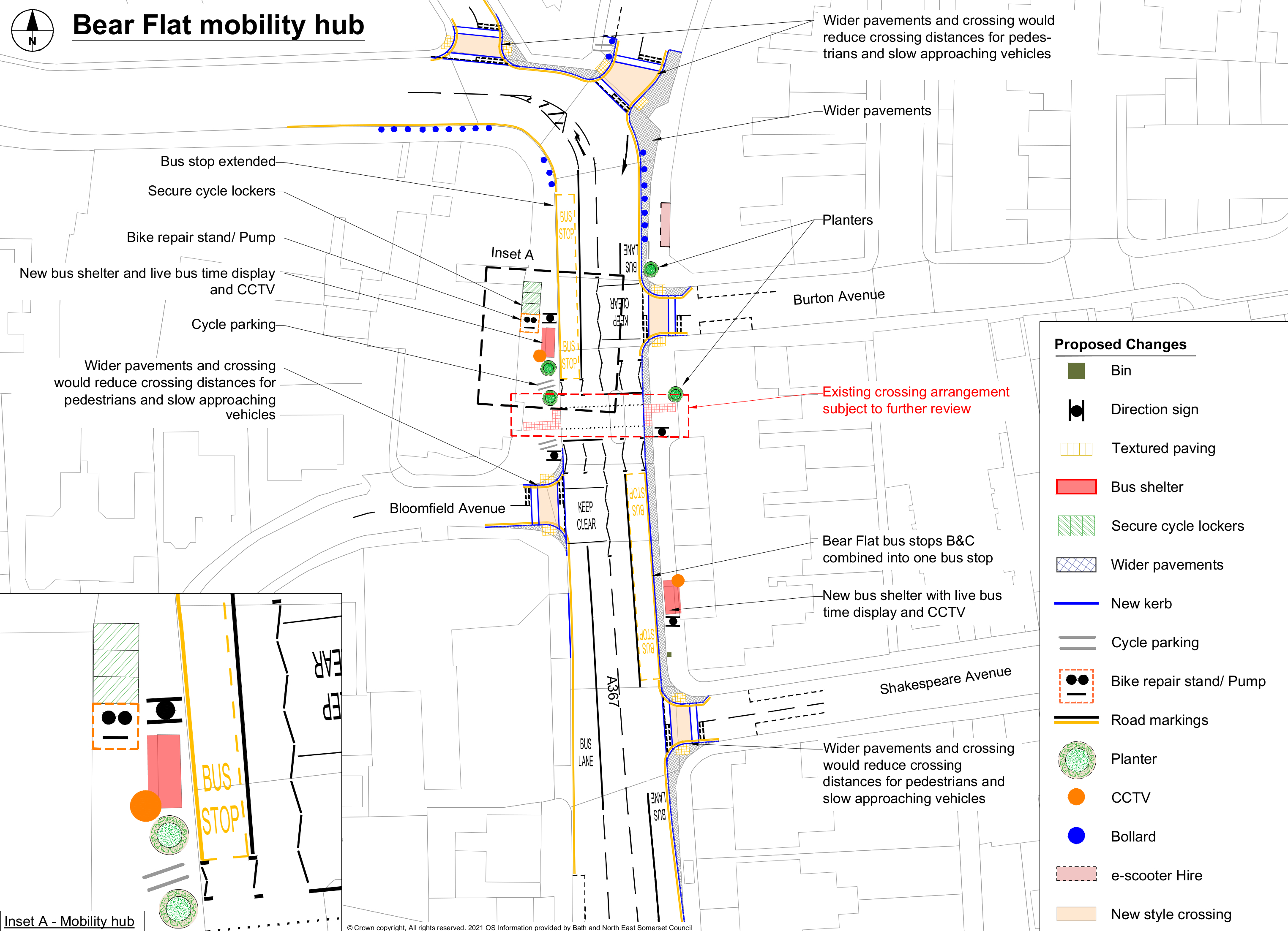 Eight new “mobility hubs” are proposed at key locations along the A37, A362 and A367.