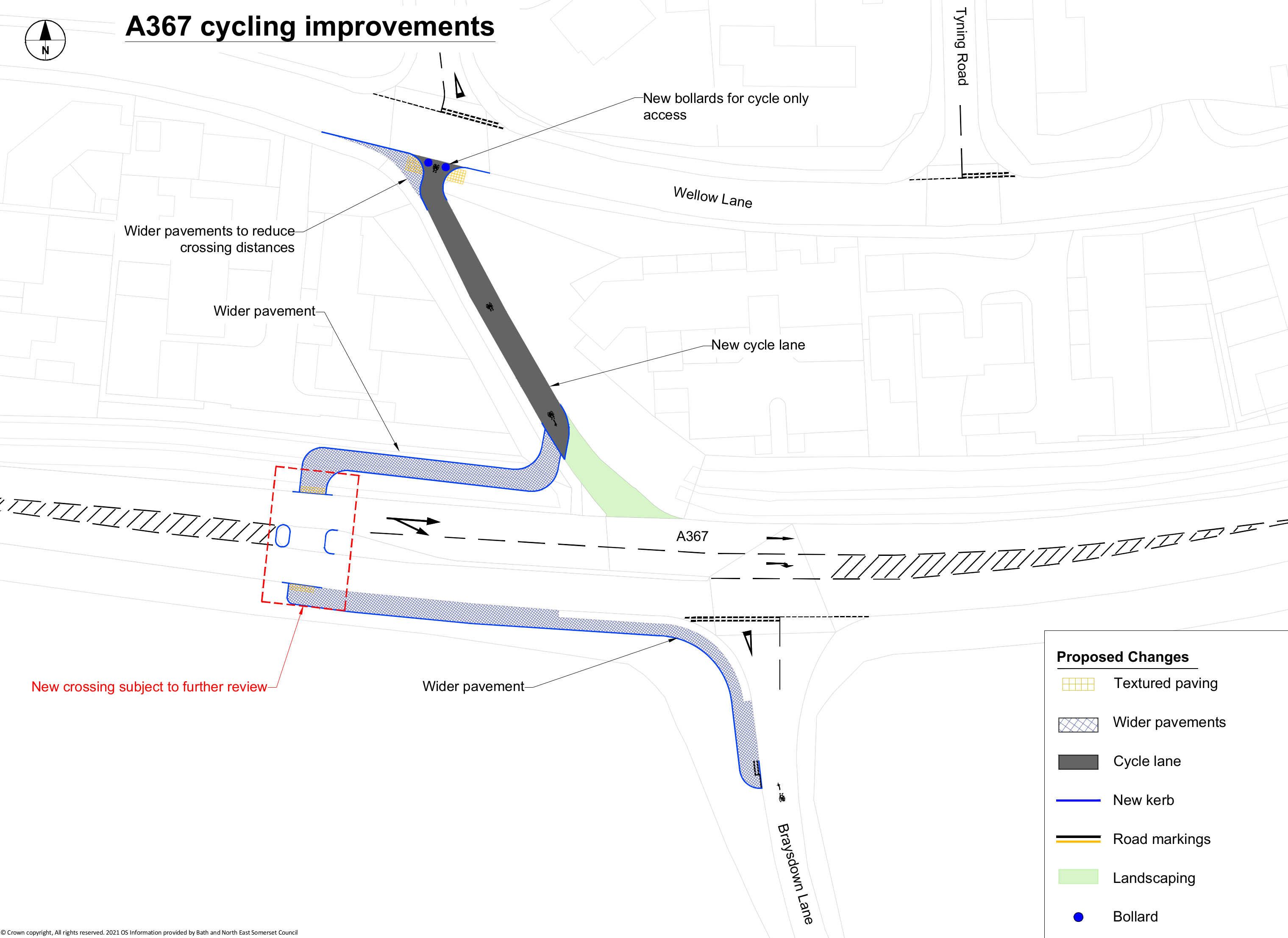 - Convert the existing bus link between Wellow Lane and the A367 to a cycle lane, with bollards at the junction with Wellow Lane