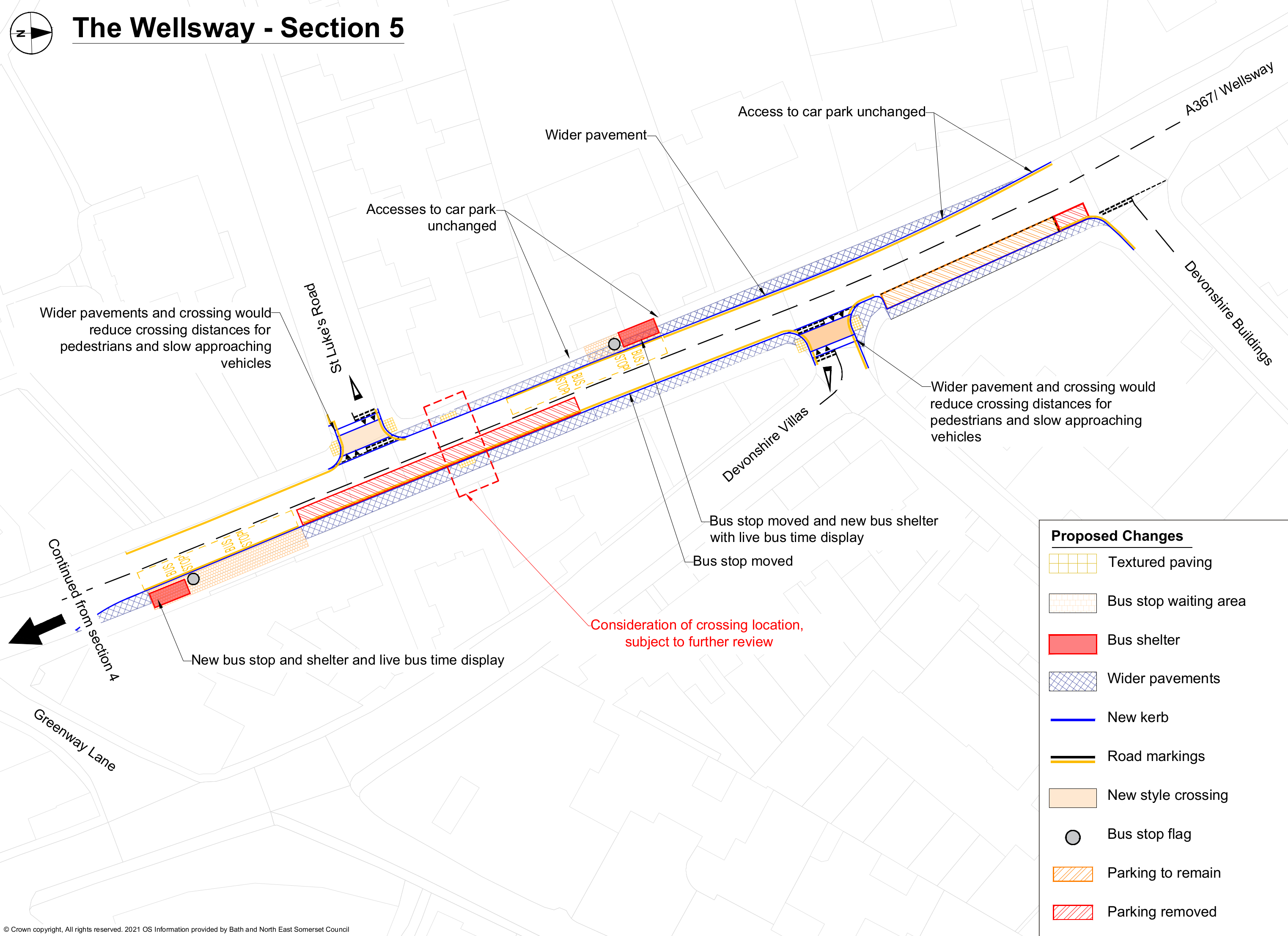 We’re proposing several changes along the Wellsway between Midford Road and Devonshire Buildings.